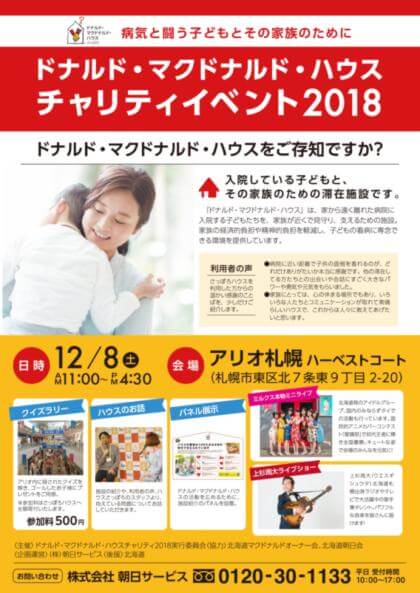 ドナルド・マクドナルド・ハウス チャリティーイベント2018 SCHEDULE トーク&ライブ 場所:アリオ札幌(札幌市東区北7条東9-2-20) 時間:出演予定 14:30頃~ 入場無料 詳細はこちら SHARE PREV ブギウギ専務DVD vol.8 発売記念 トーク&サイン会 in 東京 NEXT Aiba札幌駅前オープニングイベント BACK TO LIVE/EVENT