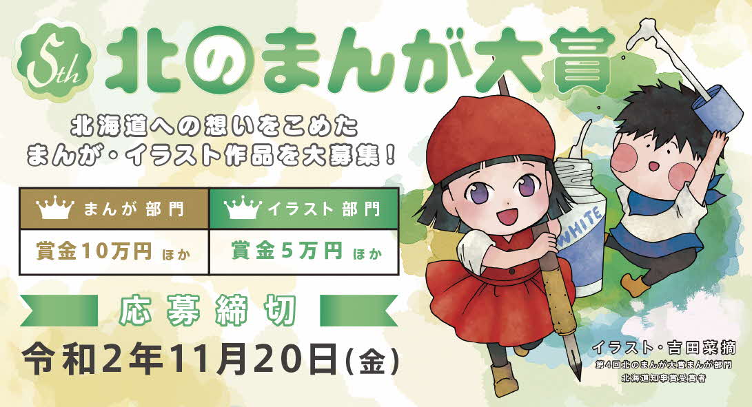 「第5回北のまんが大賞」と「第1回北の絵コンテ大賞」の募集は、8月21日よりスタートしておりますので詳細は公式HPをご覧ください。皆さんのご応募をお待ちしております。